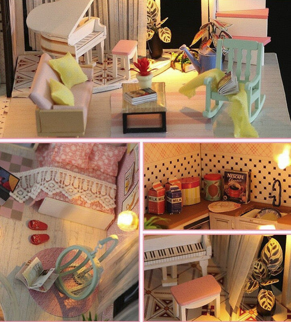 Setul include toate piesele necesare pentru constructie, iar rezultatul final este o adorabila casa in miniatura.