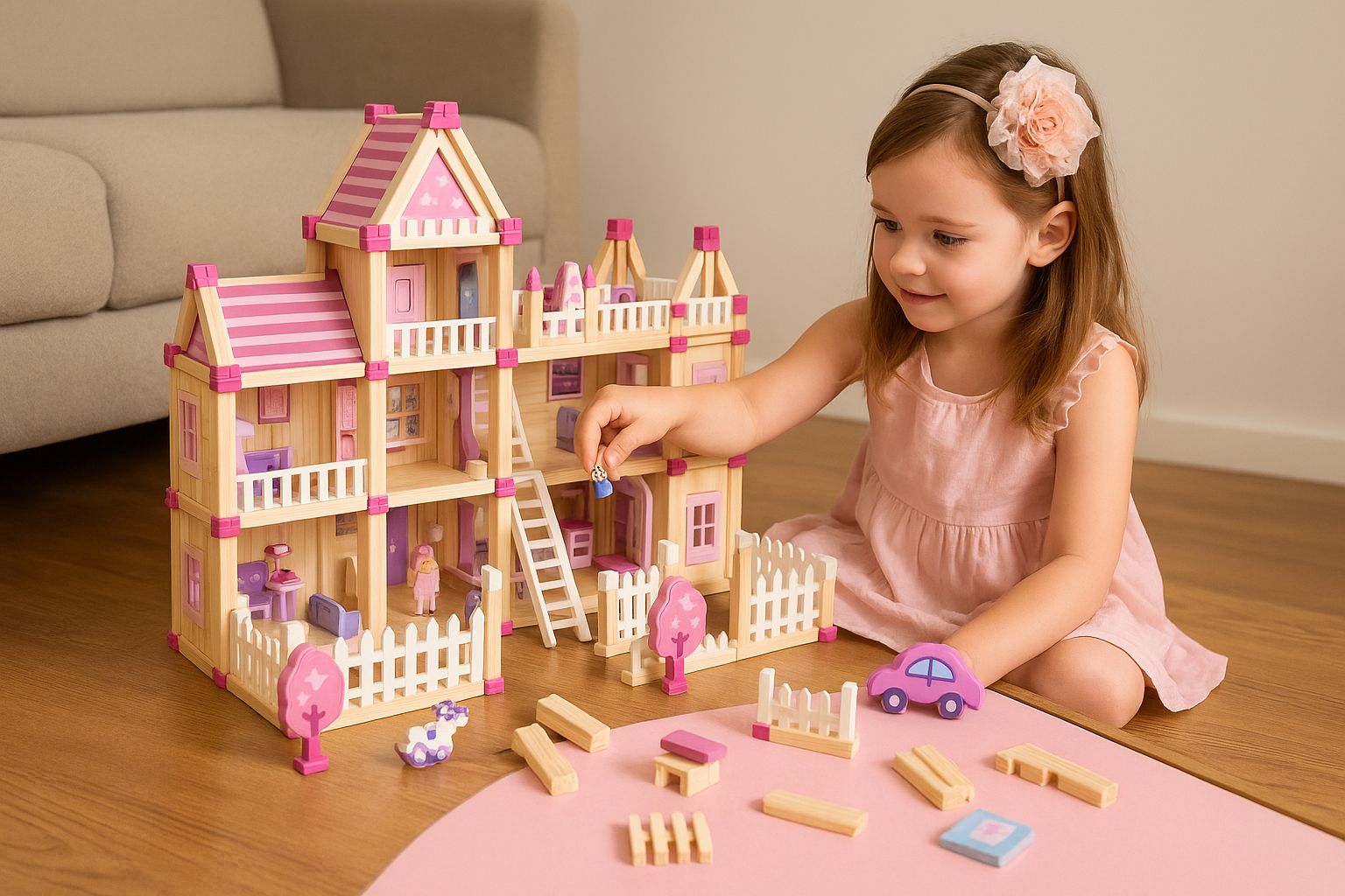 Copiii pot asambla singuri o casuta de papusi detaliata, decorand fiecare colt cu mobilier, accesorii si elemente decorative.