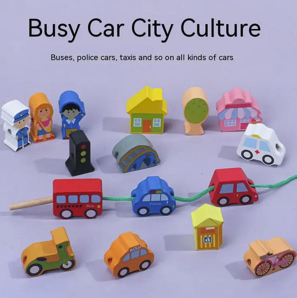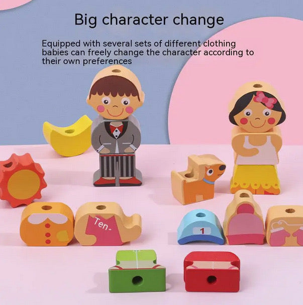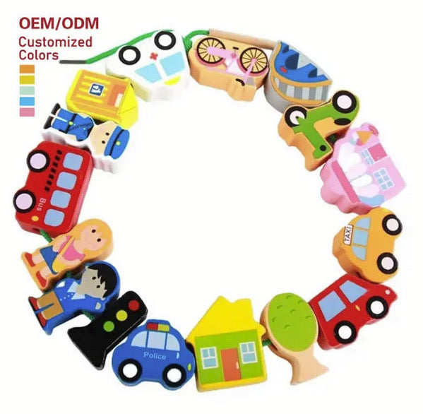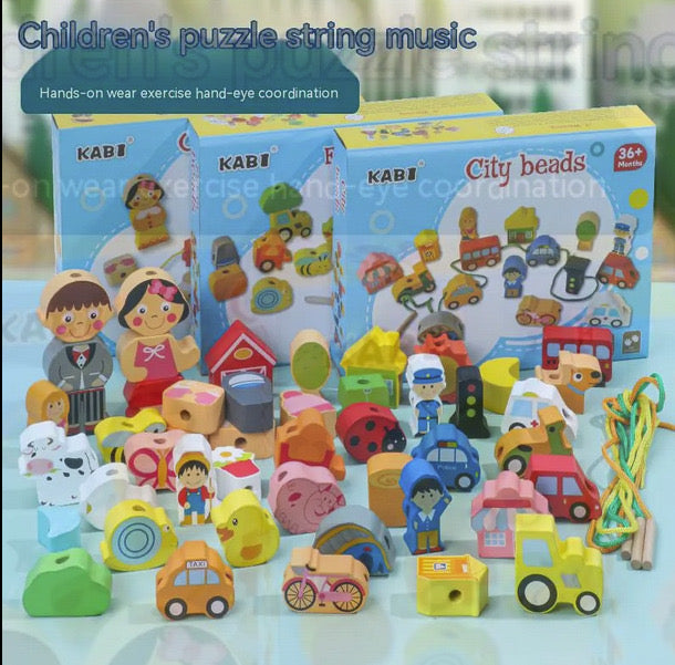 Blocuri de construcții din lemn personalizate, cu mărgele, jucării educative de potrivire a culorilor pentru copii, băieți și fete