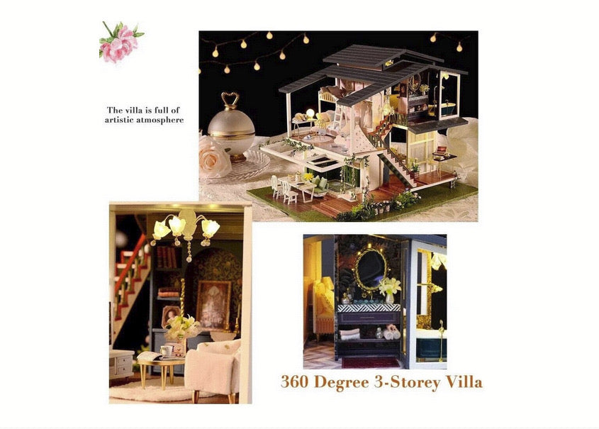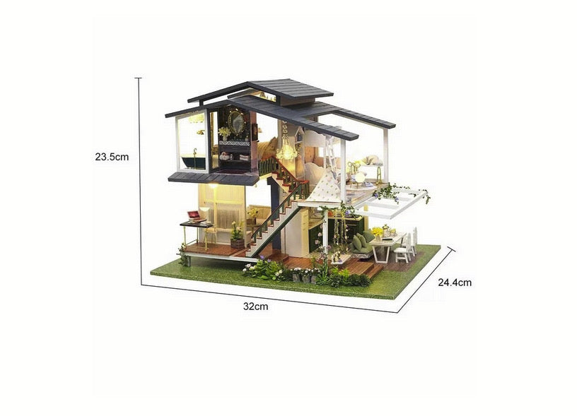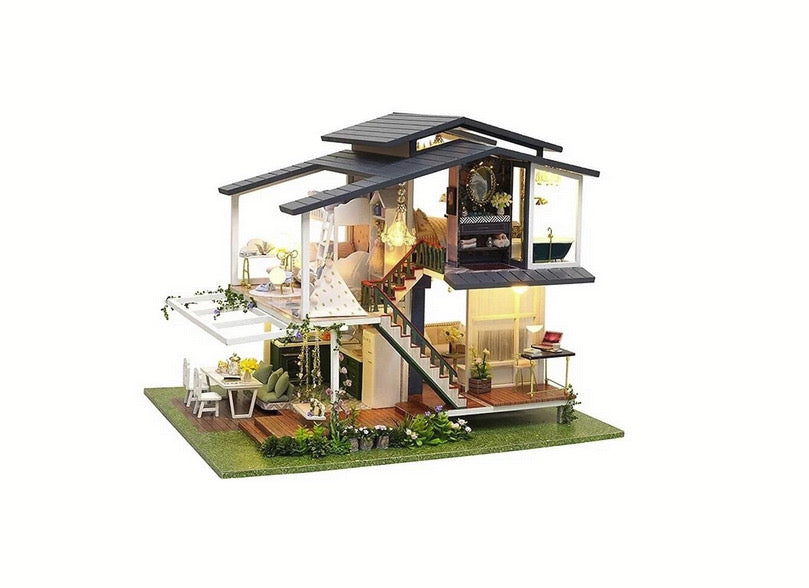 Kitul DIY de Casa Miniatura din Lemn, in stil francez, este un proiect de constructie fascinant care nu numai ca stimuleaza creativitatea, dar si aduce un strop de eleganta europeana in miniatura. Acest kit complet vine cu tot ce aveti nevoie pentru a asambla o casa de papusi sofisticata, completata de mobilier detaliat si accesorii elegante, incluzand chiar si iluminare LED pentru a adauga un efect vizual spectaculos.