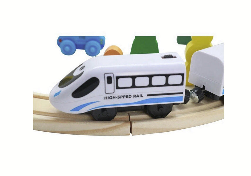 Circuit Oraș cu Trenuleț magnetic Oraselul tip Puzzle din lemn cu 26 piese, multicolor 3 ani+