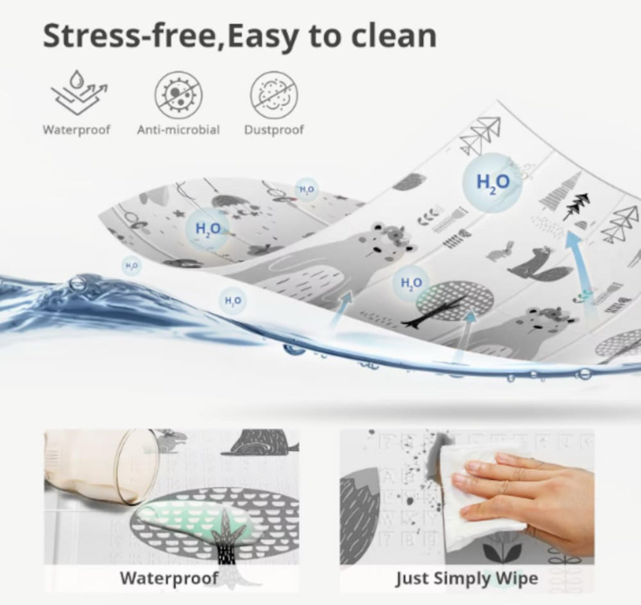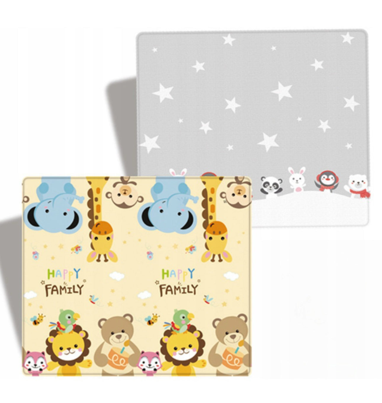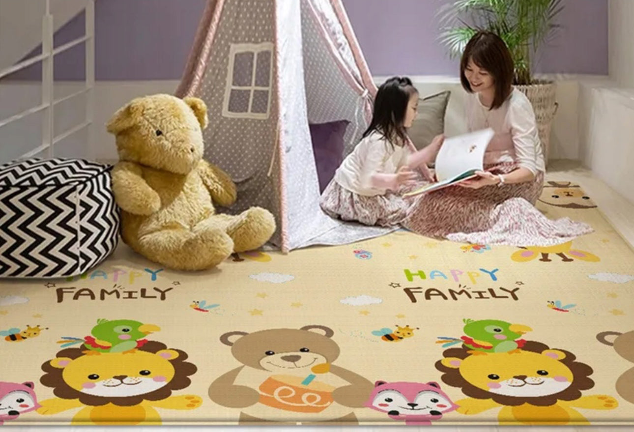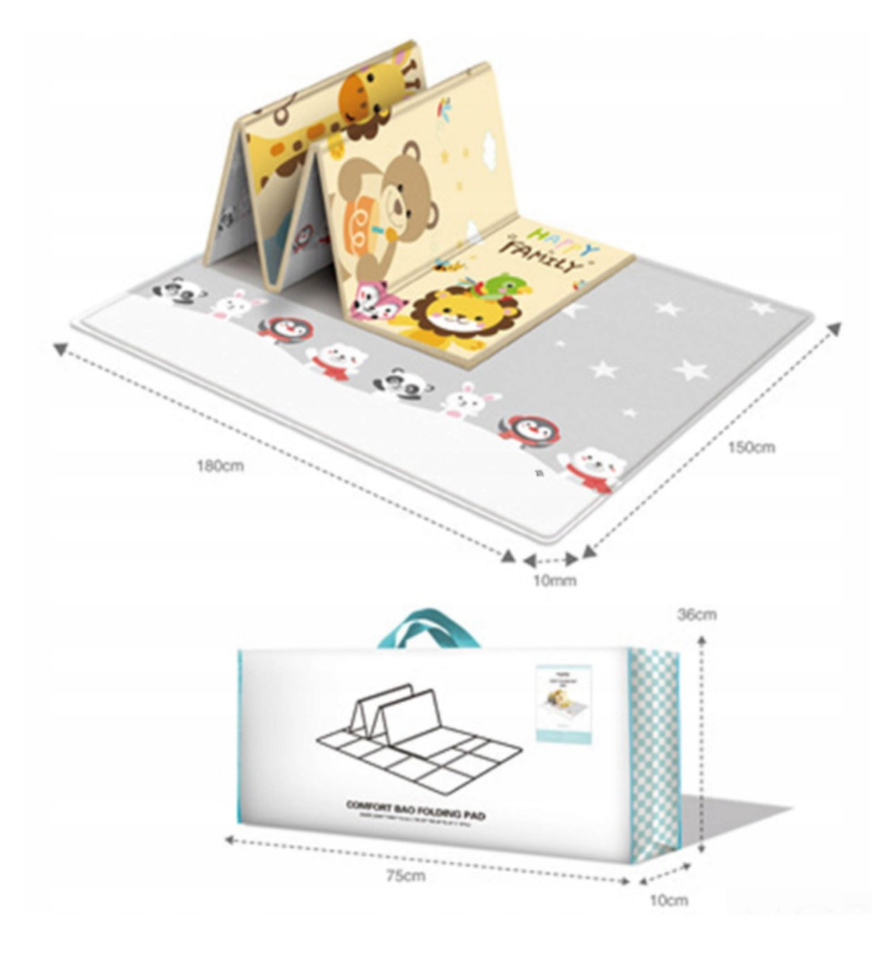 • Cele doua fete a covorasului au diferite imprimeuri, astfel ca daca bebe se plictiseste de un model, puteti intoarce covorasul invers si bebe va fi incantat sa descopere noi lucruri.
