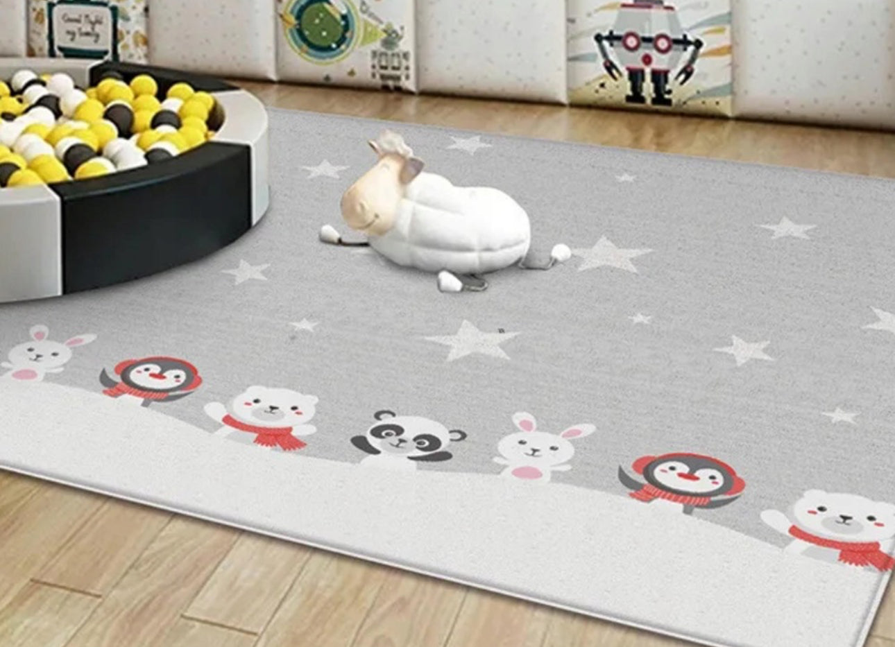 • Covorasul este gros si materialul rezistent, avand doua fete, usor de curatat, izoleaza termic si anti-soc suprafetele fiind perfect pentru camera copilului.