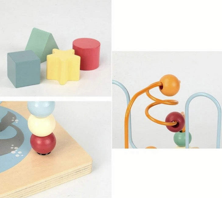 Descopera un mod distractiv si educativ de a stimula curiozitatea copilului tau cu cubul educativ din lemn 5 in 1, perfect pentru micutii de peste 2 ani. Conceput cu o tematica ocean, acest cub atrage atentia celor mici si ii ajuta sa-si dezvolte abilitatile motorii, logica si creativitatea.