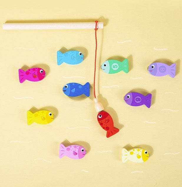 Joc educativ 6 in 1 Montessori puzzle din lemn, calcule, joc de pescuit, vehicule, truse si muncitori, Onore, multicolor, 45 x 22 x 1 cm, 50 piese