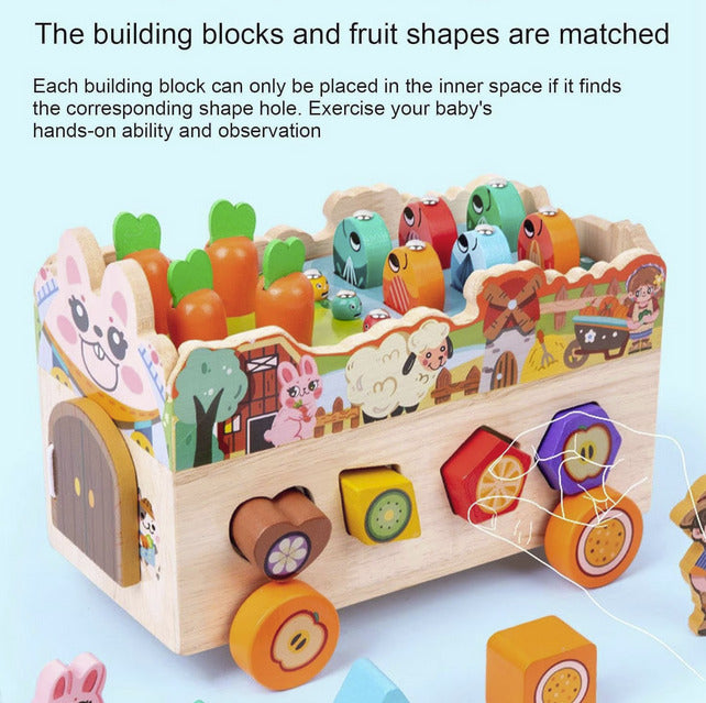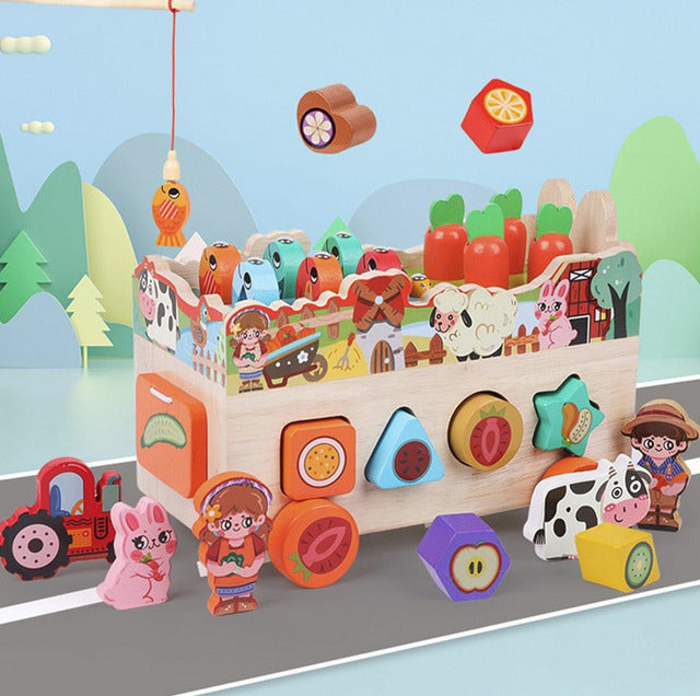 *Jucărie Educativă din Lemn cu Functii Multiple - Cărucior Sortator și Pescuit Magnetic