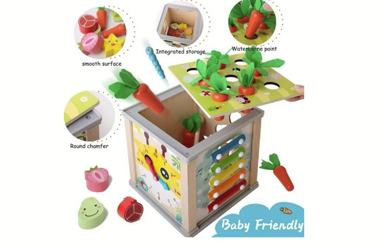 Aceasta jucarie este special conceputa pentru bebelusii cu varsta de 1, 2 si 3 ani. Fie ca sunt fetite dragute sau baieti plini de viata, vor fi profund atrasi de ea. Foloseste materiale din lemn, care sunt naturale si prietenoase cu mediul, oferindu-i copilului tau cea mai sigura experienta de joc. Nu este doar o jucarie obisnuita, ci integreaza si concepte Montessori educationale si senzoriale. Pe masura ce bebelusii se joaca, sunt expusi la o varietate de forme, culori si texturi, stimuland dezvoltarea lor senzoriala. In plus, aceasta jucarie este super interactiva. Exista 10 moduri diferite de a te juca, la fel ca o mica cutie magica, aducand in mod constant surprize bebelusului tau.