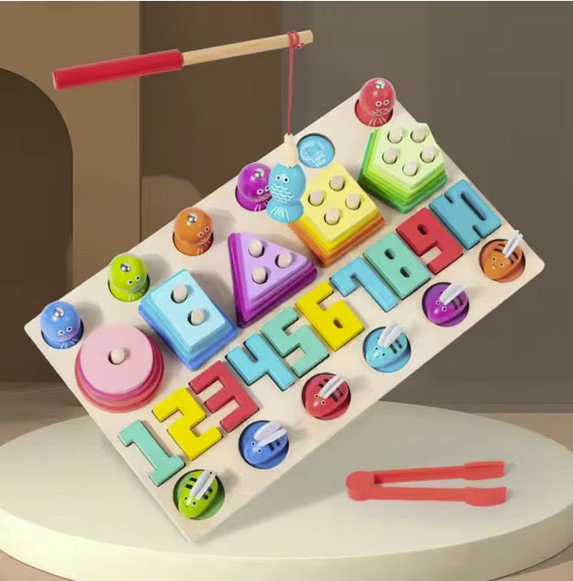Activitati incluse: Pescuit magnetic, sortare forme, numere, prins albinute.