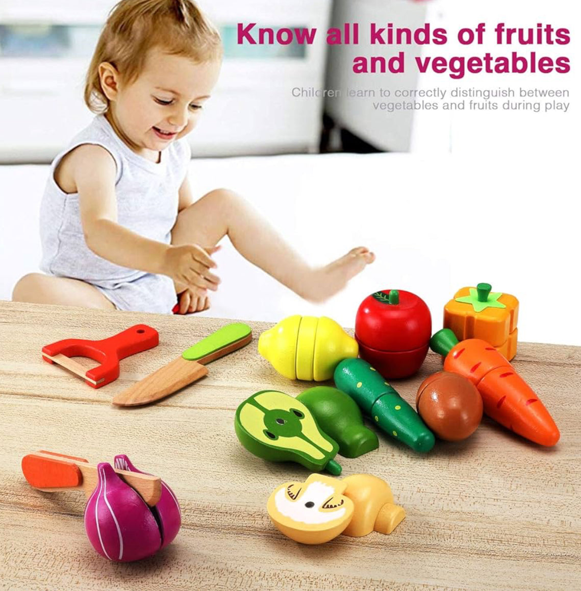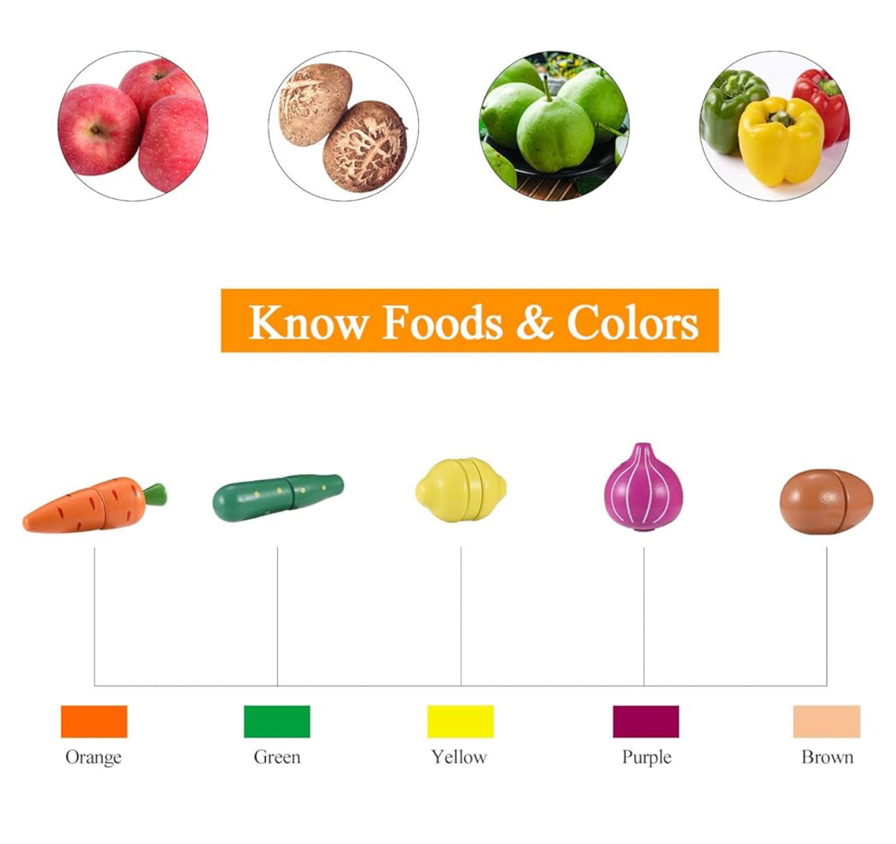 Acest set de jucărie cu mâncare include 1 curățător de jucărie și 2 cuțite de jucărie, astfel încât copiii se pot preface că ajută în bucătărie sau că pregătesc o masă cu prietenii sau familia. Și o tavă de lemn la îndemână pentru transportul și depozitarea tuturor pieselor într-un singur loc, ceea ce este foarte util.