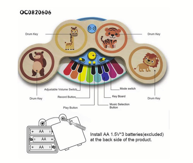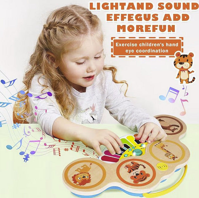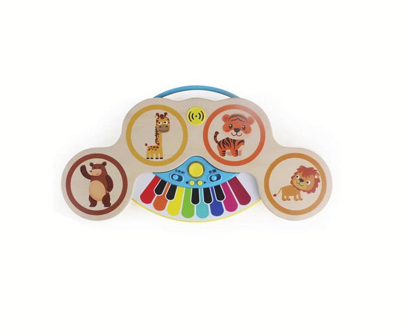 Jucarie interactiva muzicala pentru bebelusi pian si set tobe din lemn pentru invatare Montessori timpurie