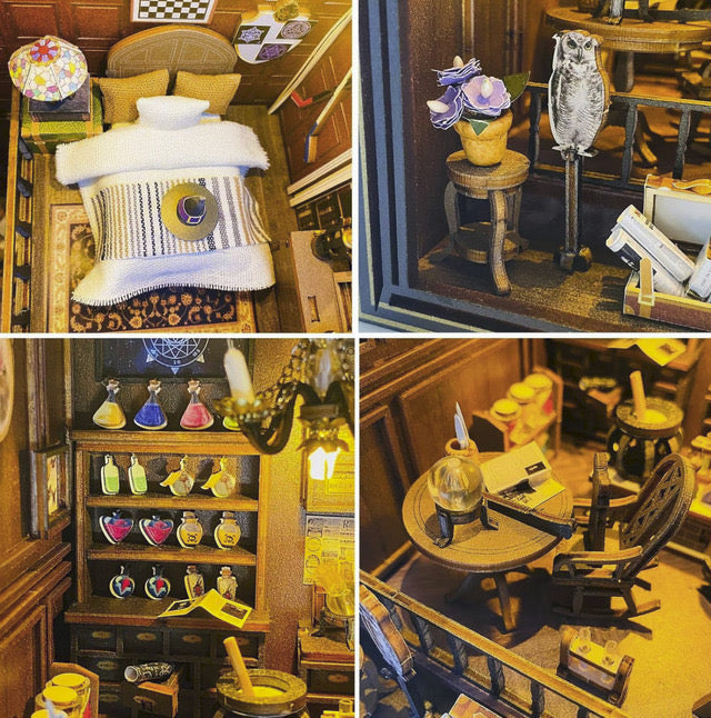 Kitul Book Nook pentru Adulti - Casuta Miniatura DIY cu Lumini LED este o modalitate inovatoare si creativa de a adauga un accent deosebit oricarei biblioteci sau rafturi de carti. Acest puzzle 3D din lemn nu numai ca serveste ca un proiect DIY distractiv si provocator, dar odata finalizat, devine o piesa decorativa captivanta ce ilumineaza si imbogateste orice spatiu.