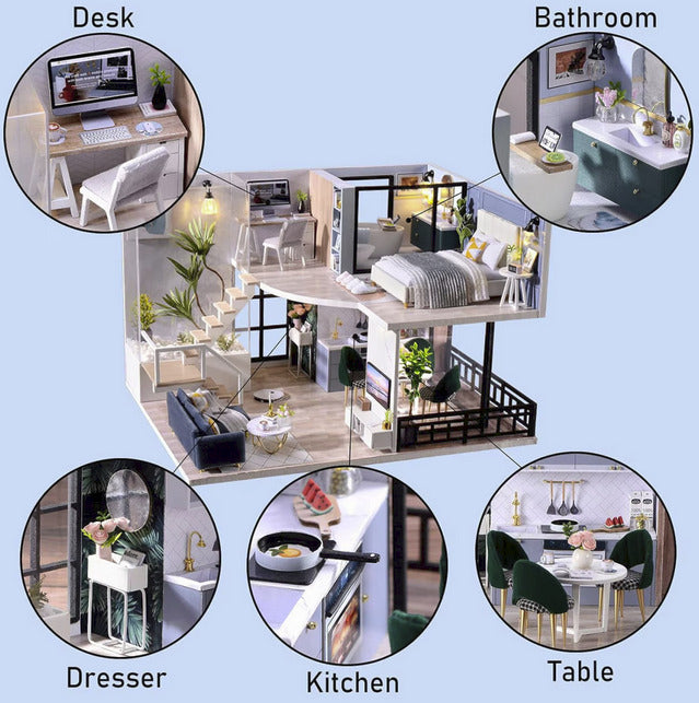 Mini Casă de păpuși din lemn 3D, Asamblare manuala, vârsta 5-12 ani
