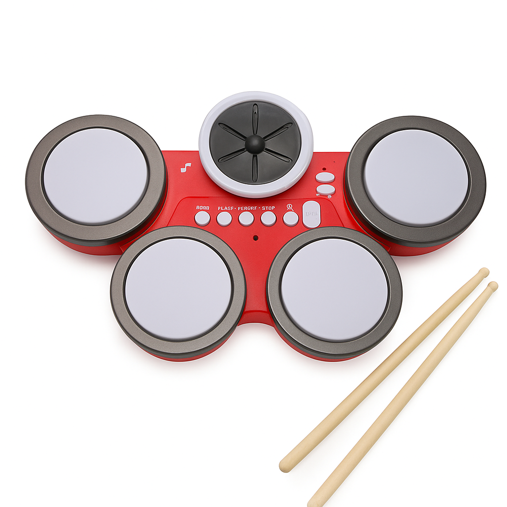 Transformă joaca într-o aventură muzicală cu TOBE ELECTRIC 660-41, un set de tobe electronice conceput special pentru copii! Acest instrument interactiv dezvoltă simțul ritmului, coordonarea și creativitatea celor mici, oferind ore întregi de distracție educativă.