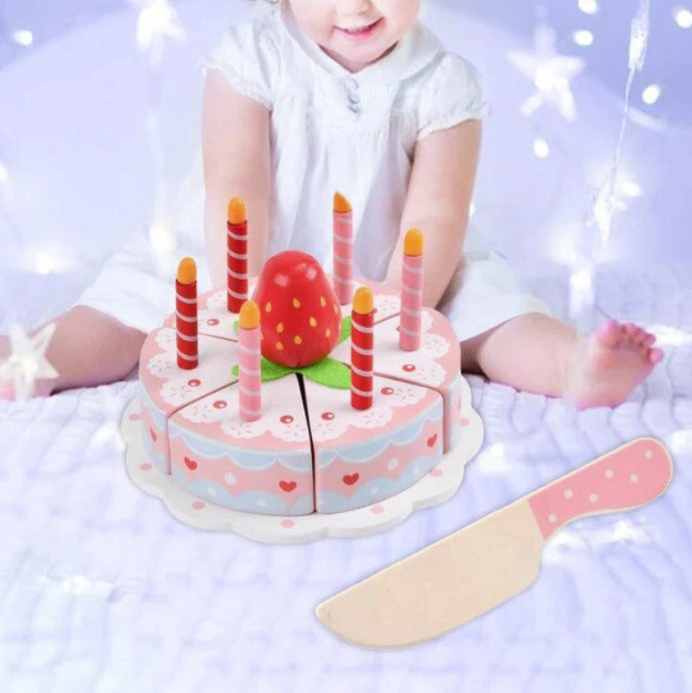 Setul de joc pentru copii cu tort din lemn este perfect pentru micii bucatari care doresc sa invete sa prepare deserturi.