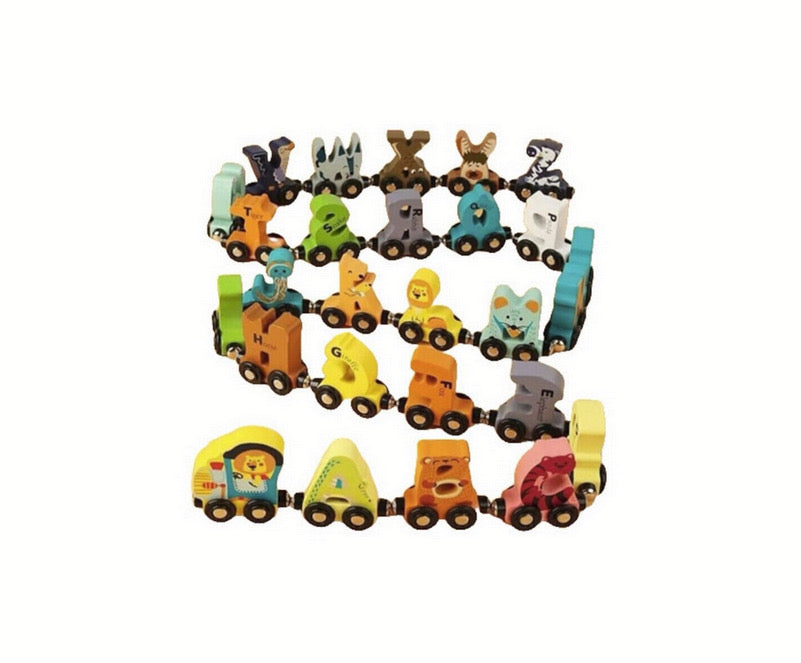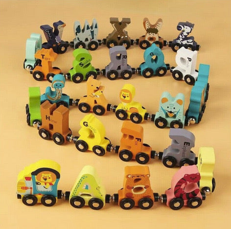 Trenuleț educațional din lemn cu litere magnetic, A-Z